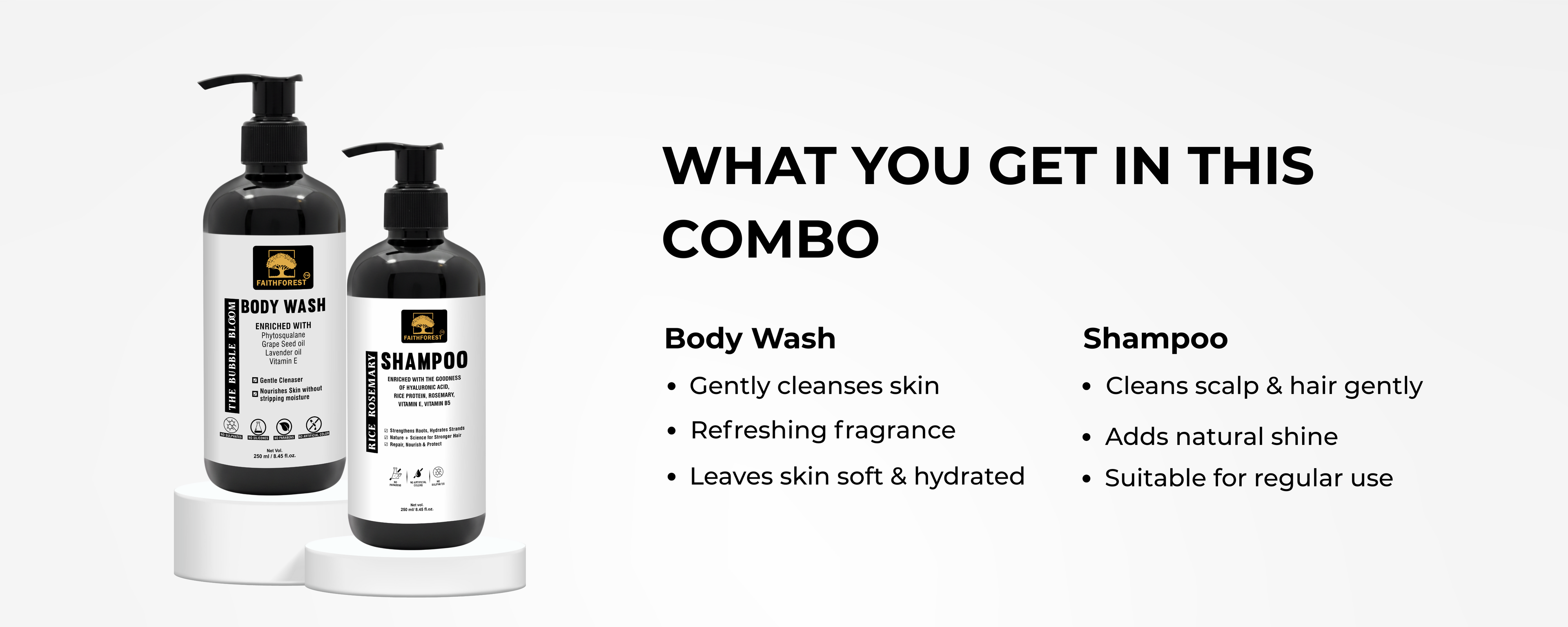 | Feature | FaithForest Rice Rosemary Shampoo | FaithForest The Bubble Bloom Body Wash |