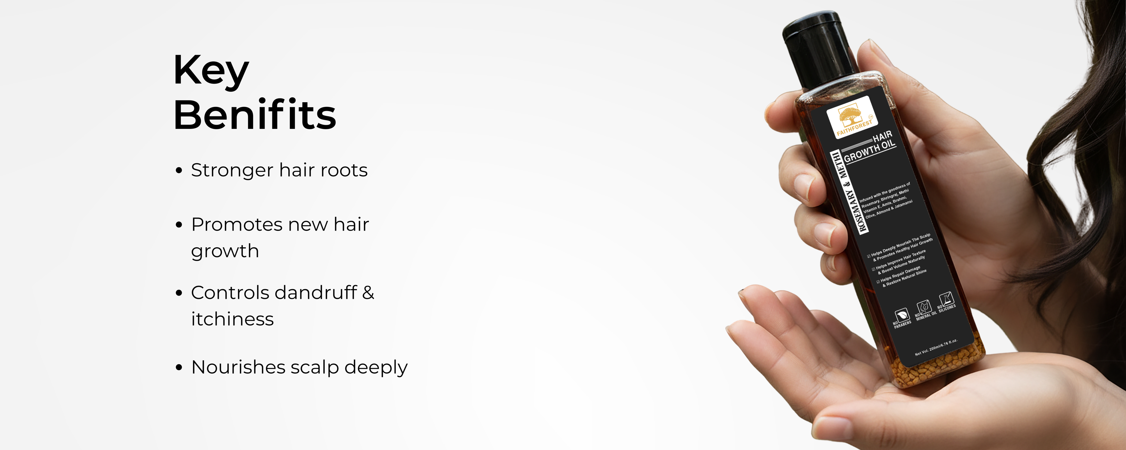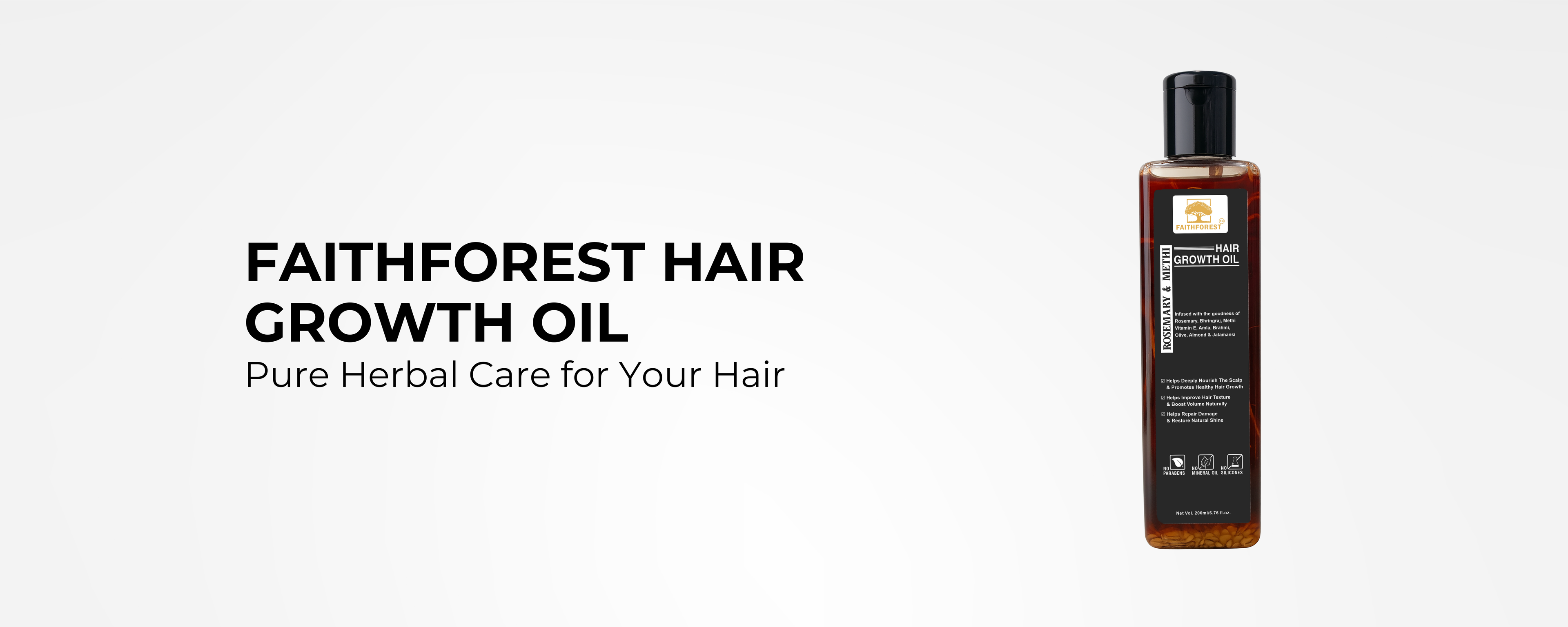 The FaithForest Rosemary & Methi Hair Growth Oil is a potent Ayurvedic blend designed to deeply nourish the scalp, promote hair growth, and restore your hair's natural volume and shine. Infused with 20+ botanical extracts, this non-sticky formula is your all-in-one solution for damage repair, reduced breakage, and thicker-looking hair.