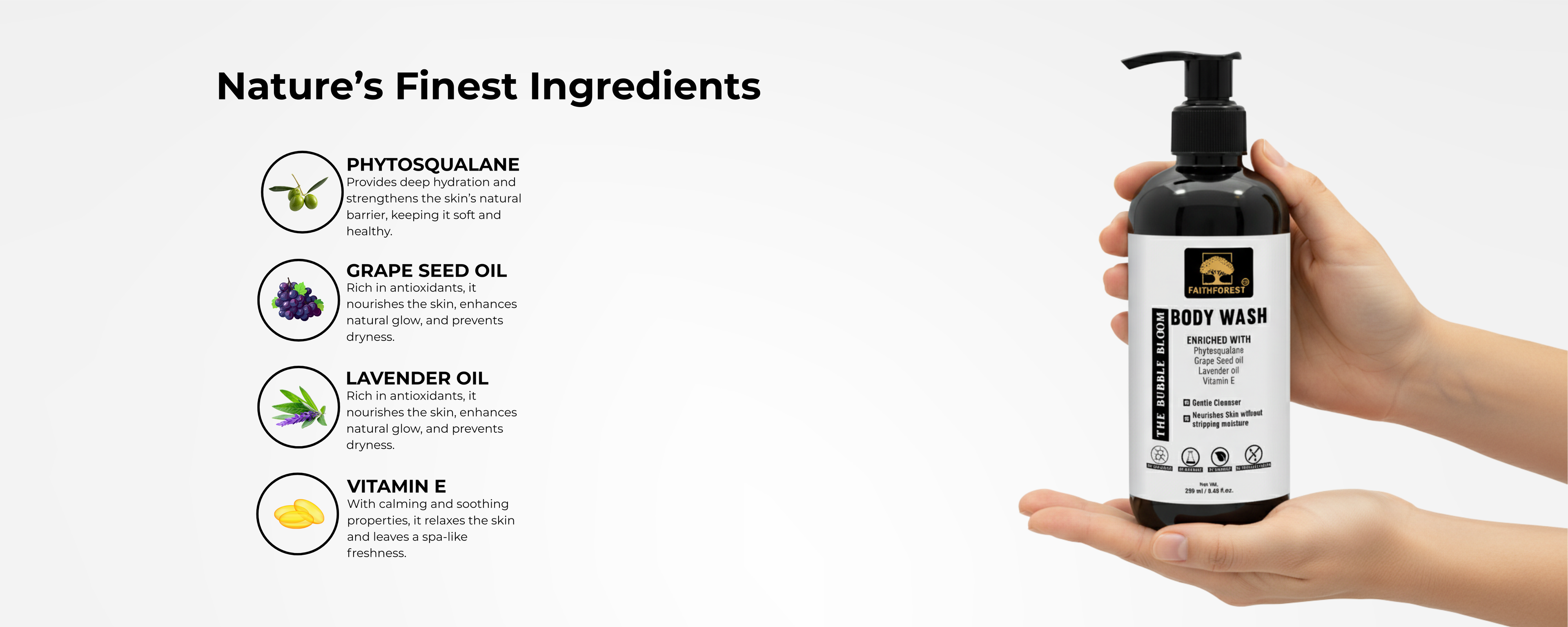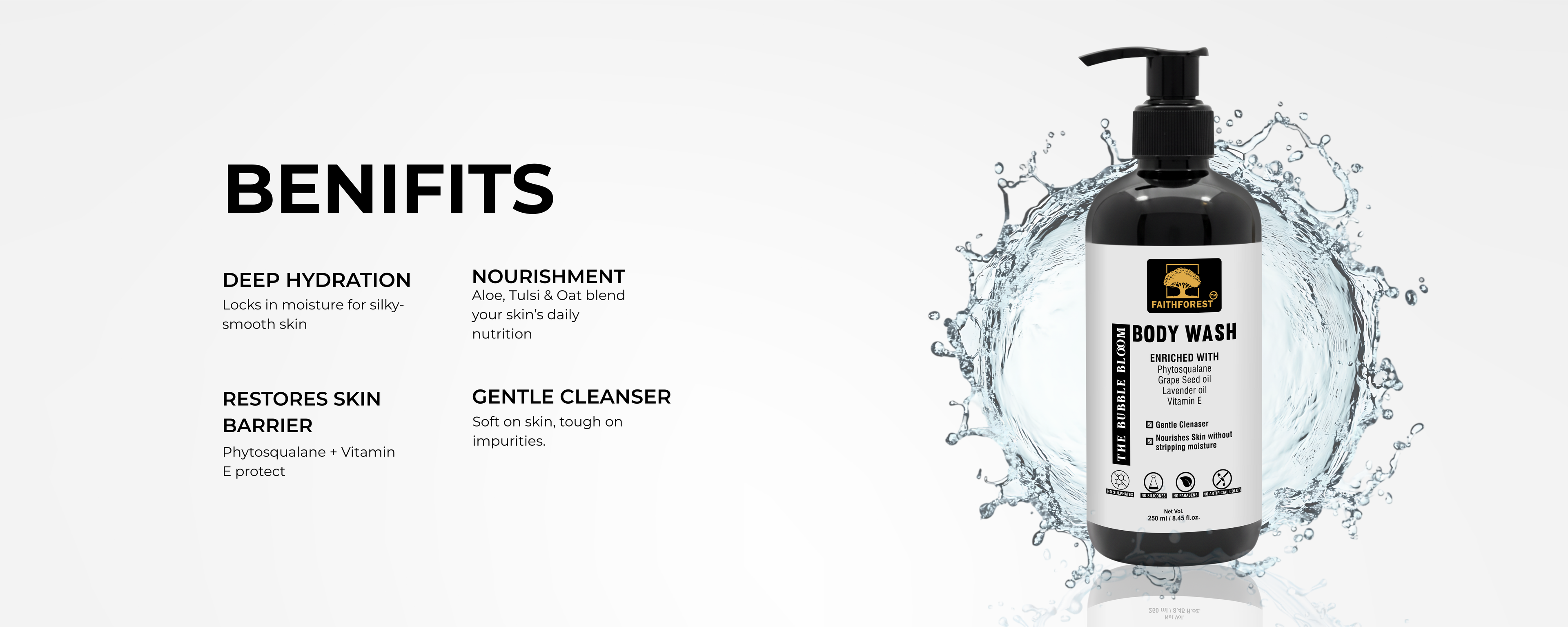 Elevate your shower routine with FaithForest THE BUBBLE BLOOM BODY WASH, a refreshing botanical formula designed to cleanse without ever stripping your skin's natural moisture. Our unique, gentle blend leaves your skin feeling smooth, supple, and rejuvenated after every wash.