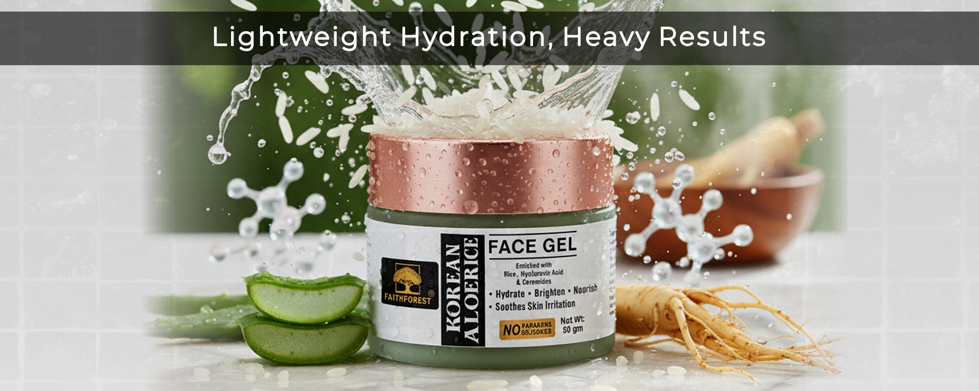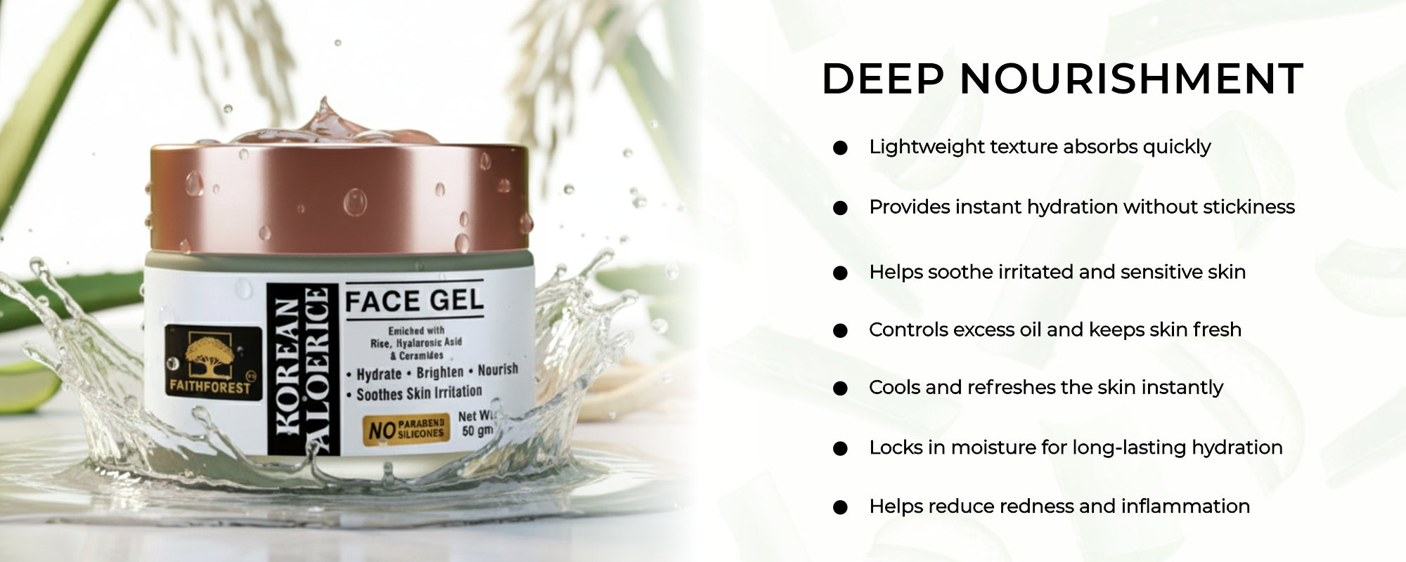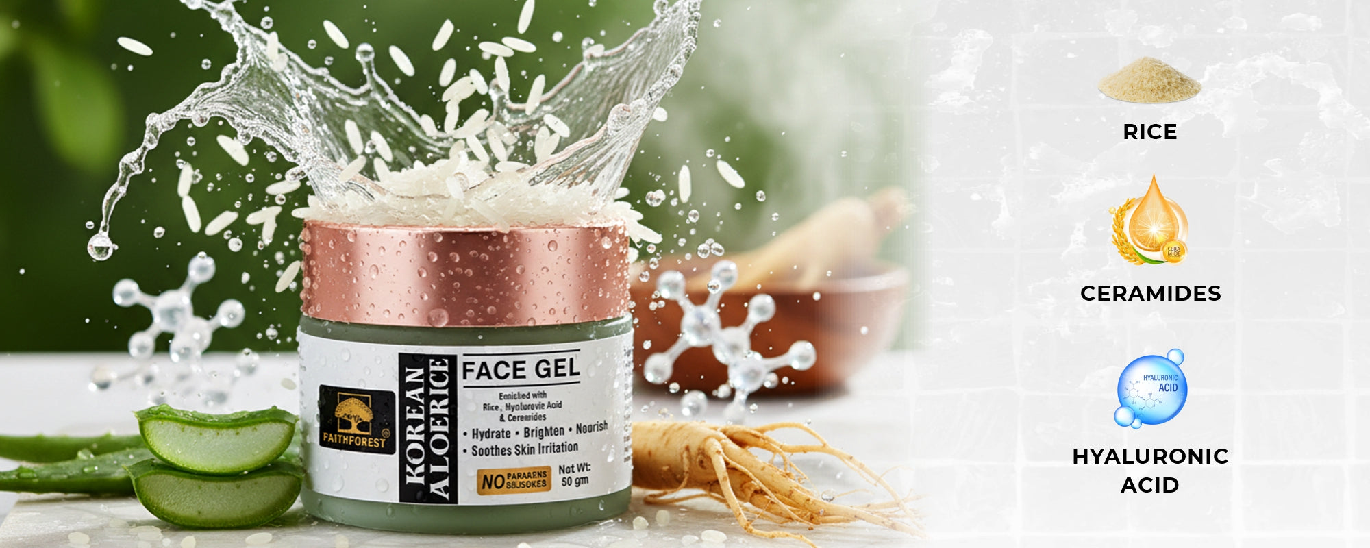 Unlock the secret to dewy, glass-like skin with the FaithForest KOREAN ALOERICE FACE GEL. This advanced, lightweight gel is specially formulated to deliver intense hydration, strengthen the skin barrier, and soothe irritation, making it your go-to moisturizer for healthy, glowing skin.