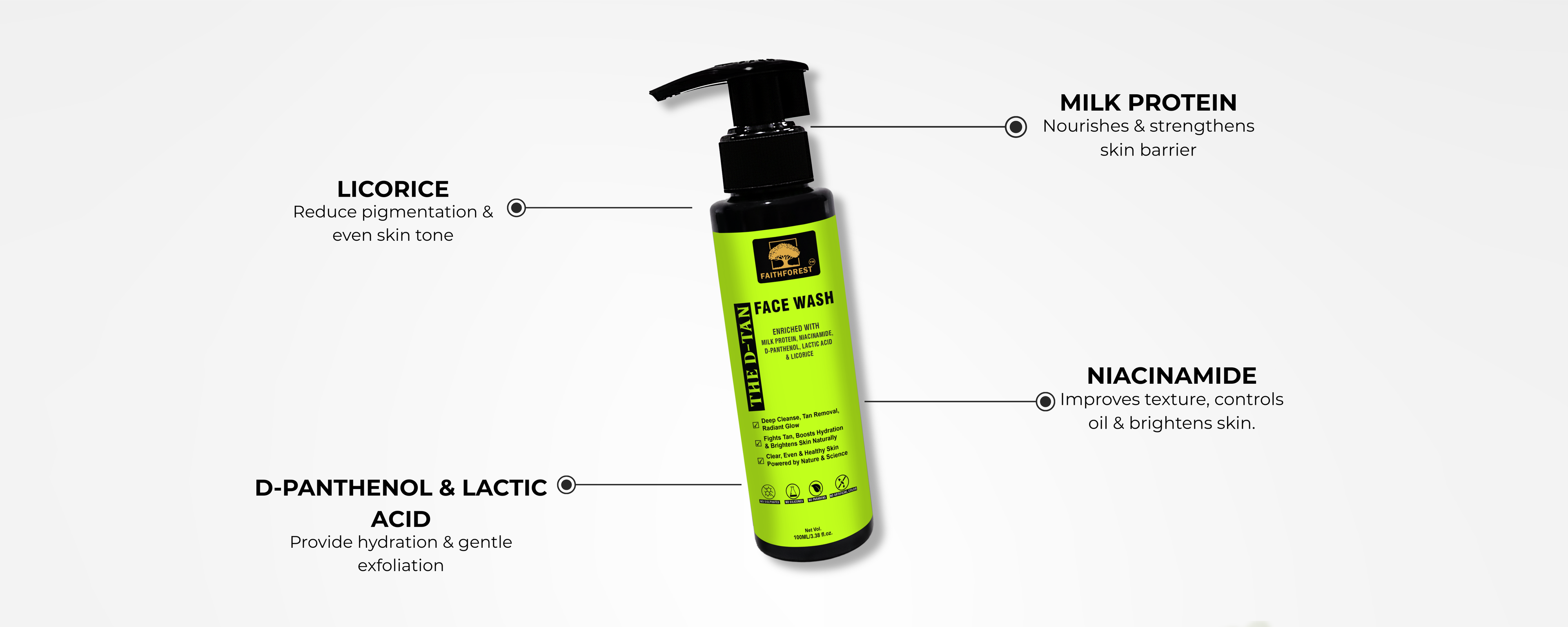 | The D-TAN Face Wash | 100 ml | Milk Protein, Niacinamide, Licorice | ā¹499/- | Step 1: Cleansing |